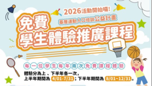 【最新公告 Latest News】 2026免費學生運動體驗課程開放報名! 🎉【2026免費學生運動體驗課程開放報名 ...閱讀全文 想變好,就趁現在! 【想變好,現在就開始】 NOW IS Y ...閱讀全文 每個月最後一個星期四,女性免費 女孩們集合 💗 每個月 最後一個星期四 ...閱讀全文 兒童泳池小班制課程 是在培養孩子的勇氣與自信 ❤️ ✨【#兒 ...閱讀全文 115-3期課程報名開跑啦 📣【115-3期課程報名開跑啦!】 課表 ...閱讀全文 冰宮04月包場公告 ...閱讀全文 五星好評送面膜|限時開跑 ✨【五星好評送面膜|限時開跑】✨ 來土運 ...閱讀全文 讓孩子愛上挑戰,從第一步攀岩開始! 🧗♂️【 #小小攀岩家出動!挑戰你的勇 ...閱讀全文 冰壺初體驗|限時開放報名! 🥌 #冰壺初體驗|限時開放報名! ❄️ ...閱讀全文 讓身體回到最美樣子|機械式皮拉提斯 💪【機械式皮拉提斯|讓身體回到最美的樣子 ...閱讀全文
