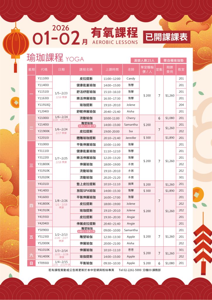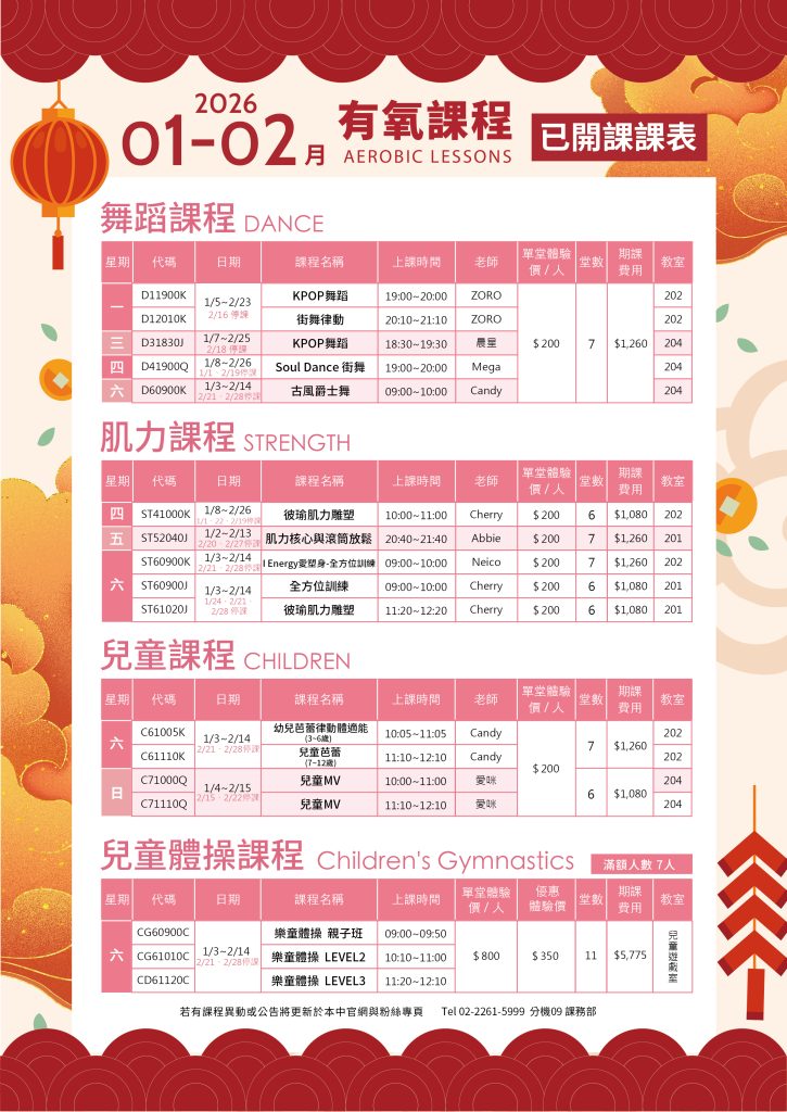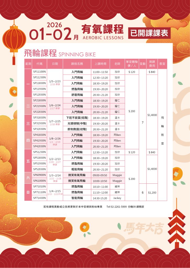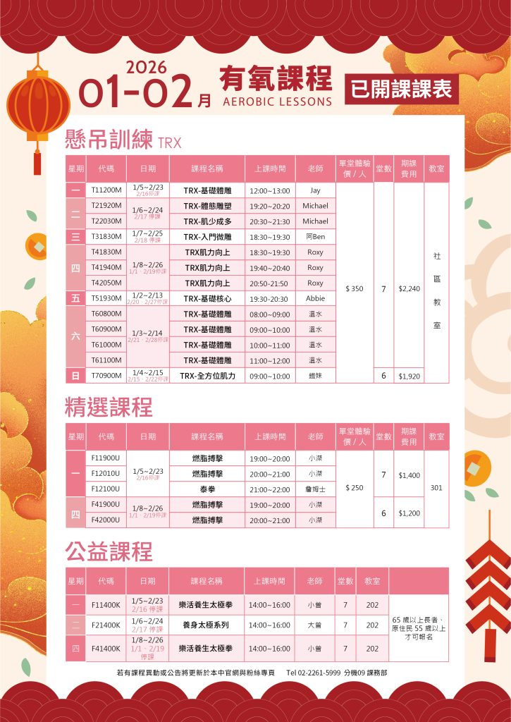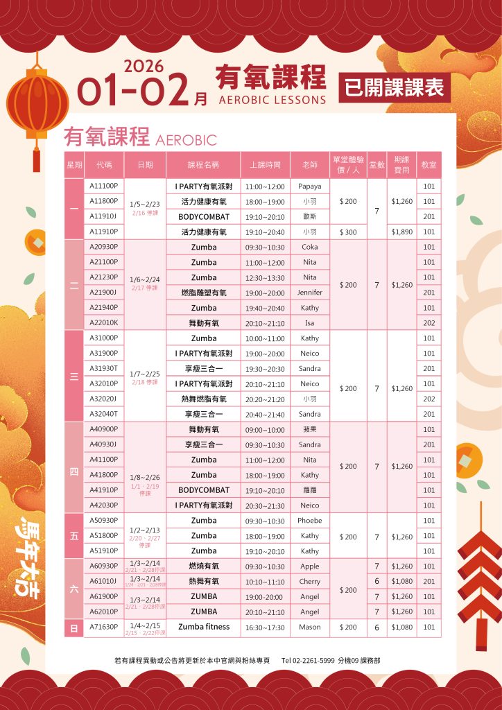 有氧開課課表