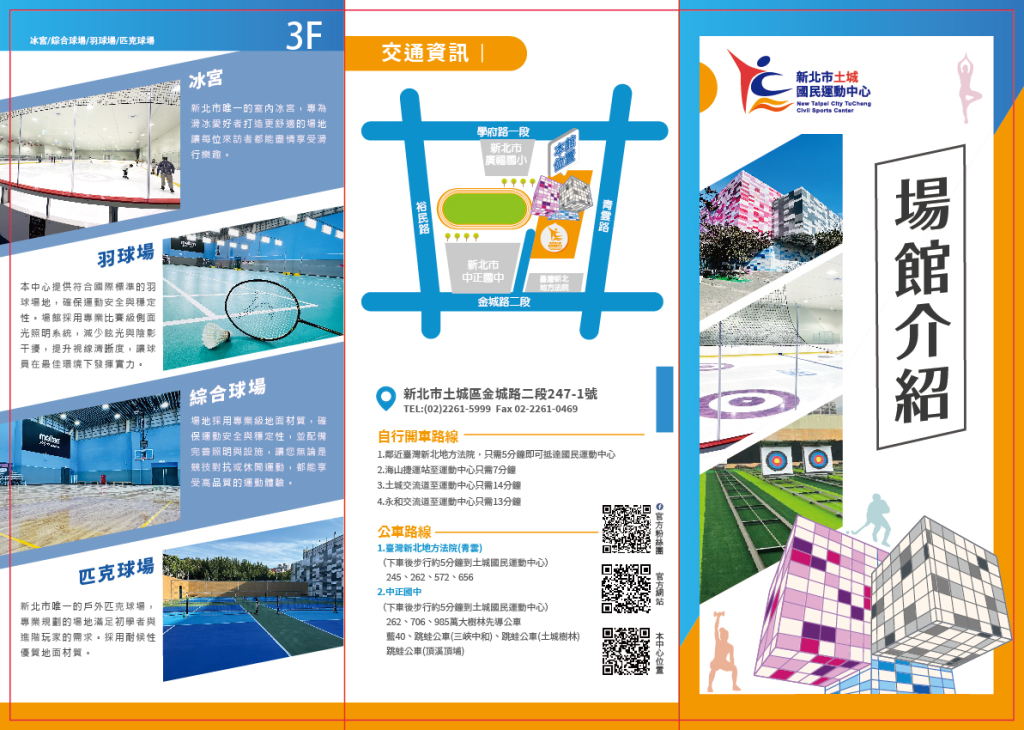 新北市土城國民運動中心為結合運動空間、綠建築及節能設計之建築物,打造民眾休閒、健身學習、多元性運動空間,館內包含游泳池、冰宮、健身房及綜合球場等運動設施,提供民眾友善運動環境。