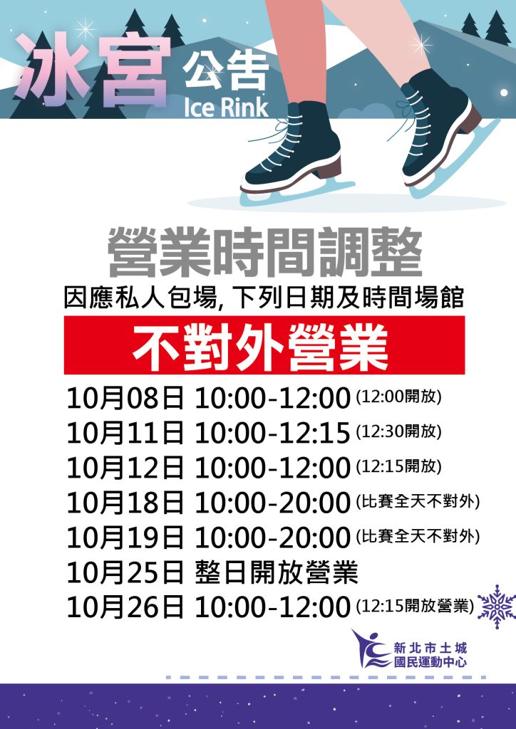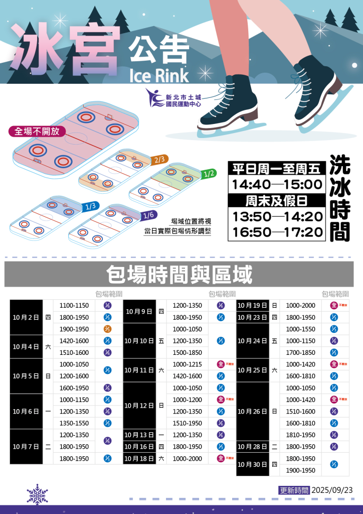 10/1-10/31 冰宮包場時間與區域